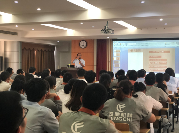 2019年6月14晚,在人力部張西西的力邀下,江總百忙之中趕到公司為大家上了一堂生動有趣地培訓(xùn),培訓(xùn)的主題是《風(fēng)馳產(chǎn)品的歷史發(fā)展之路》。